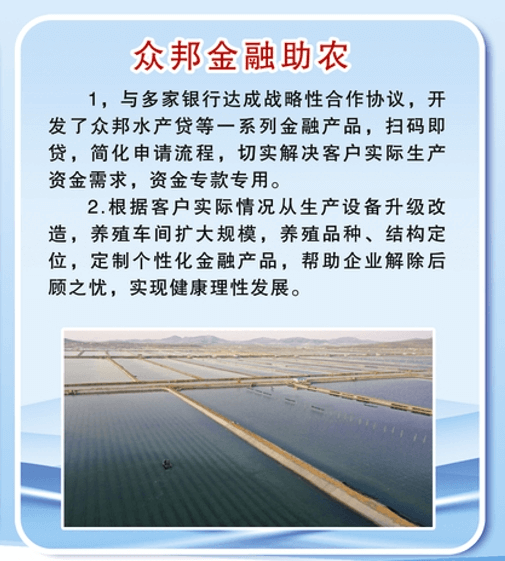 蓝色海洋,生命之源,绿色粮仓。海洋水产品,富含优质蛋白和营养,是人类大食物观不可或缺的重要组成部分。持续稳定的生产优质水产产品一直是水产养殖人的不懈追求。水产养殖是高度依赖科技的行业,是一个系统的产业链工程,独木不成林,一人不成众。众邦在发展的道路上深深的体会到,系统专业的服务,对每一个水产人意义重大。链接优质生产资源,服务养殖全过程,拓展水产品深加工,众邦致力于打造专业化的水产公共服务平台,诚心服务,共享渔丰。